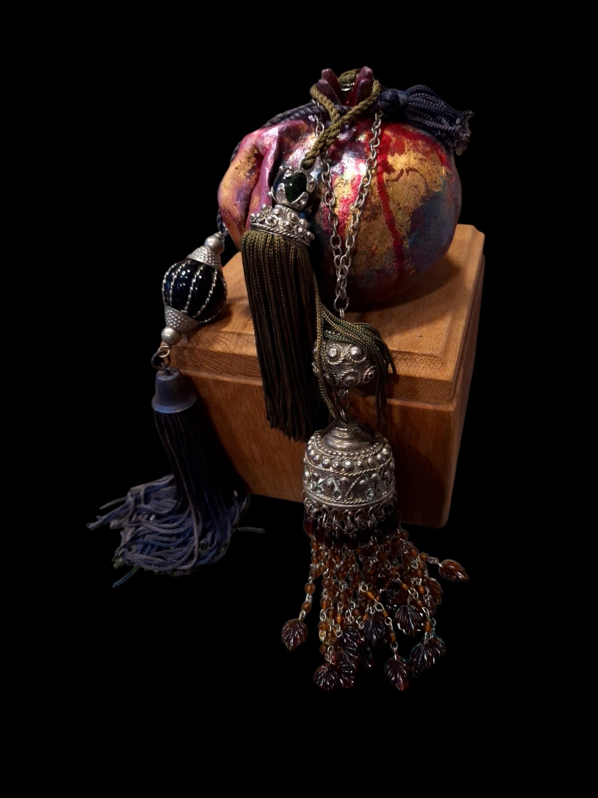 With chains and tassels